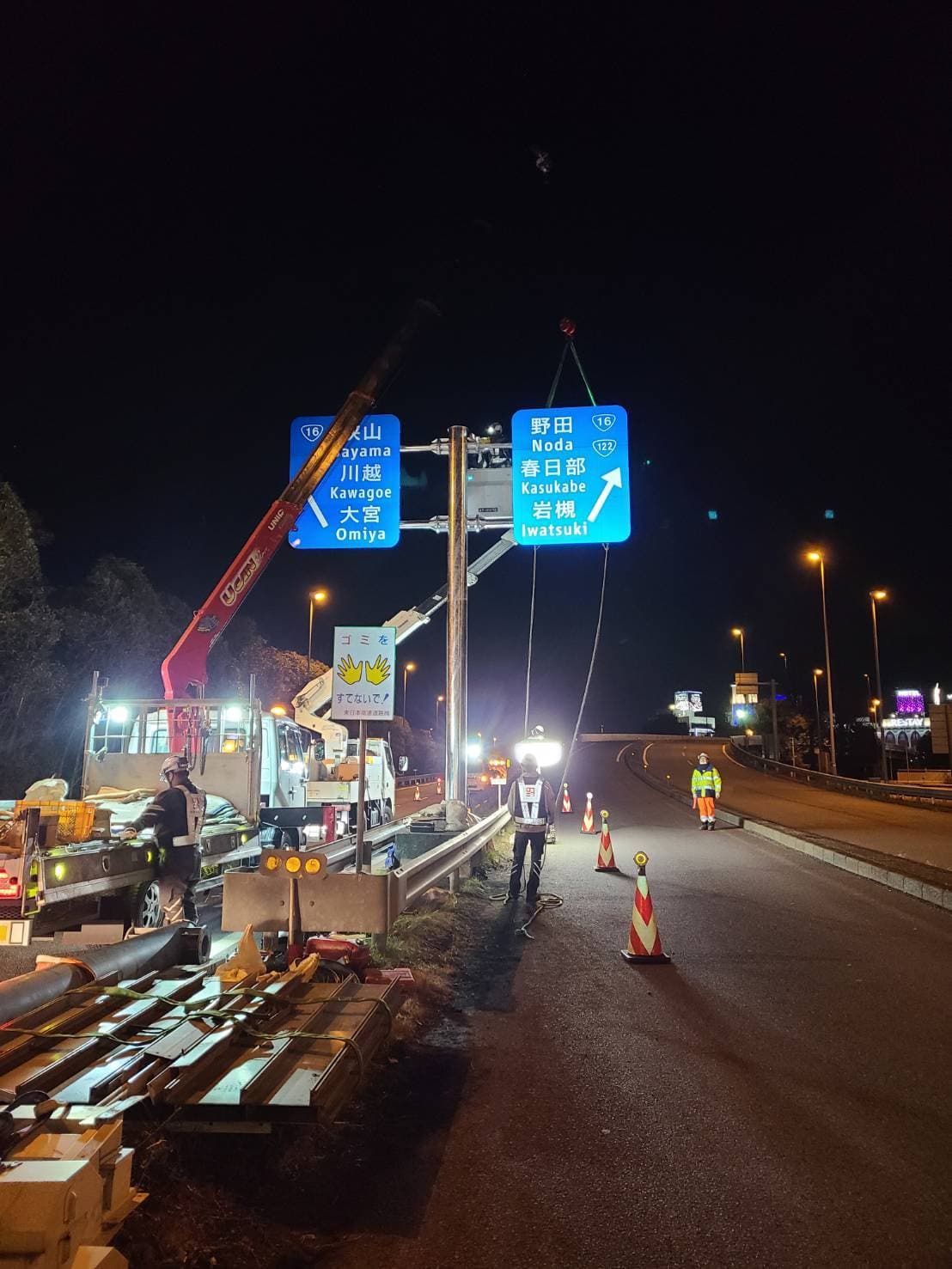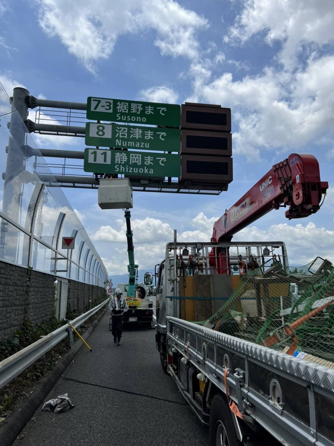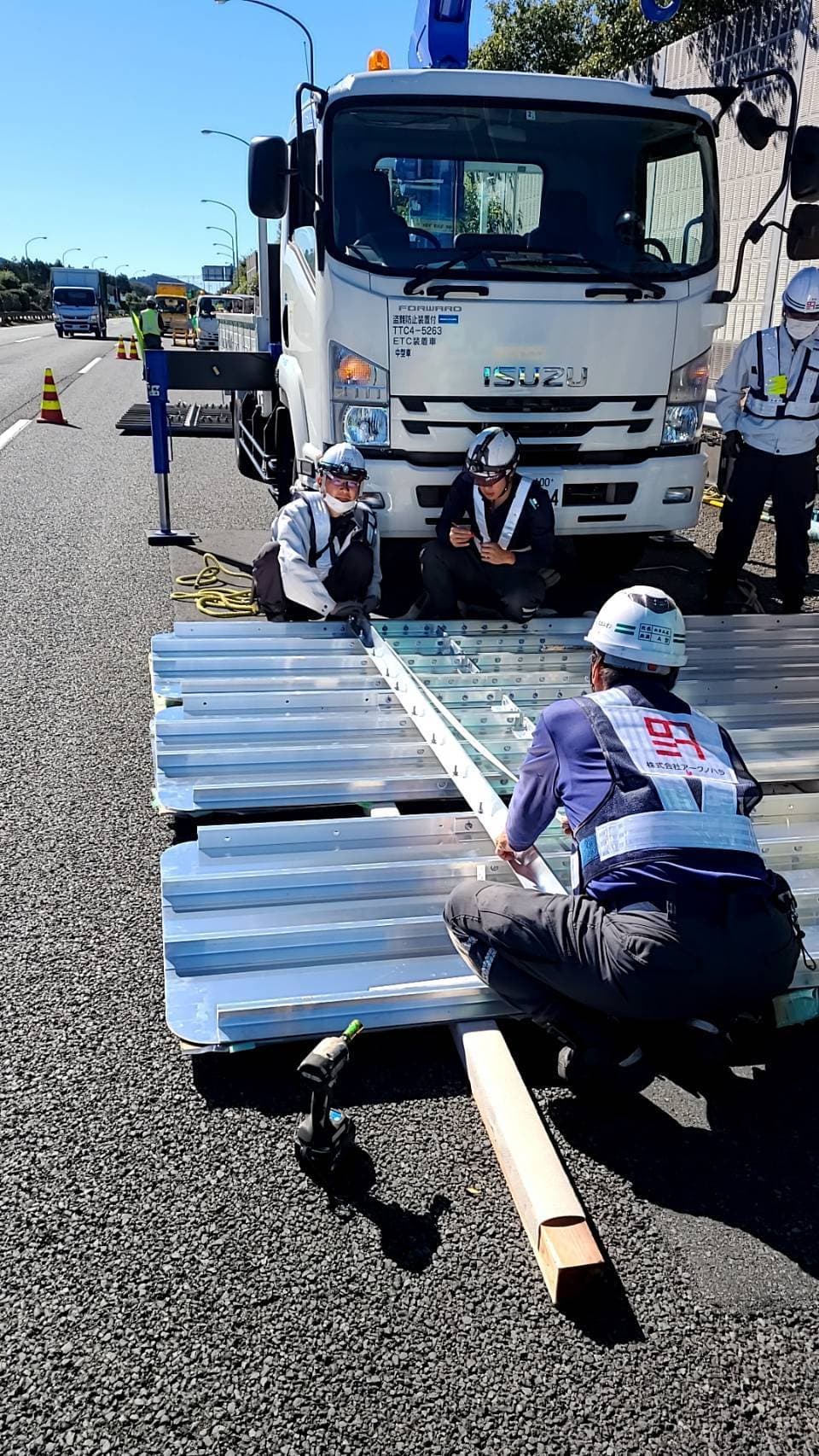 | 平成30年 | 12月 西新井陸橋遮音壁事故復旧工事 11月 仙台館内標識取替工事 10月 関越道花園門型標識移設工事 9月 東北道盛岡落下防止対策工事 東北道十和田落下防止対策 8月 トヨタ東富士防護柵ネット設置工事 7月 中央道那須地区遮音壁設置工事 小田原厚木有料道路仮説GR移設工事 4月 国道298号国分遮音壁設置工事 国道298号大和田地区遮音壁設置工事 1月 国道298号堀之内地区遮音壁設置工事 |