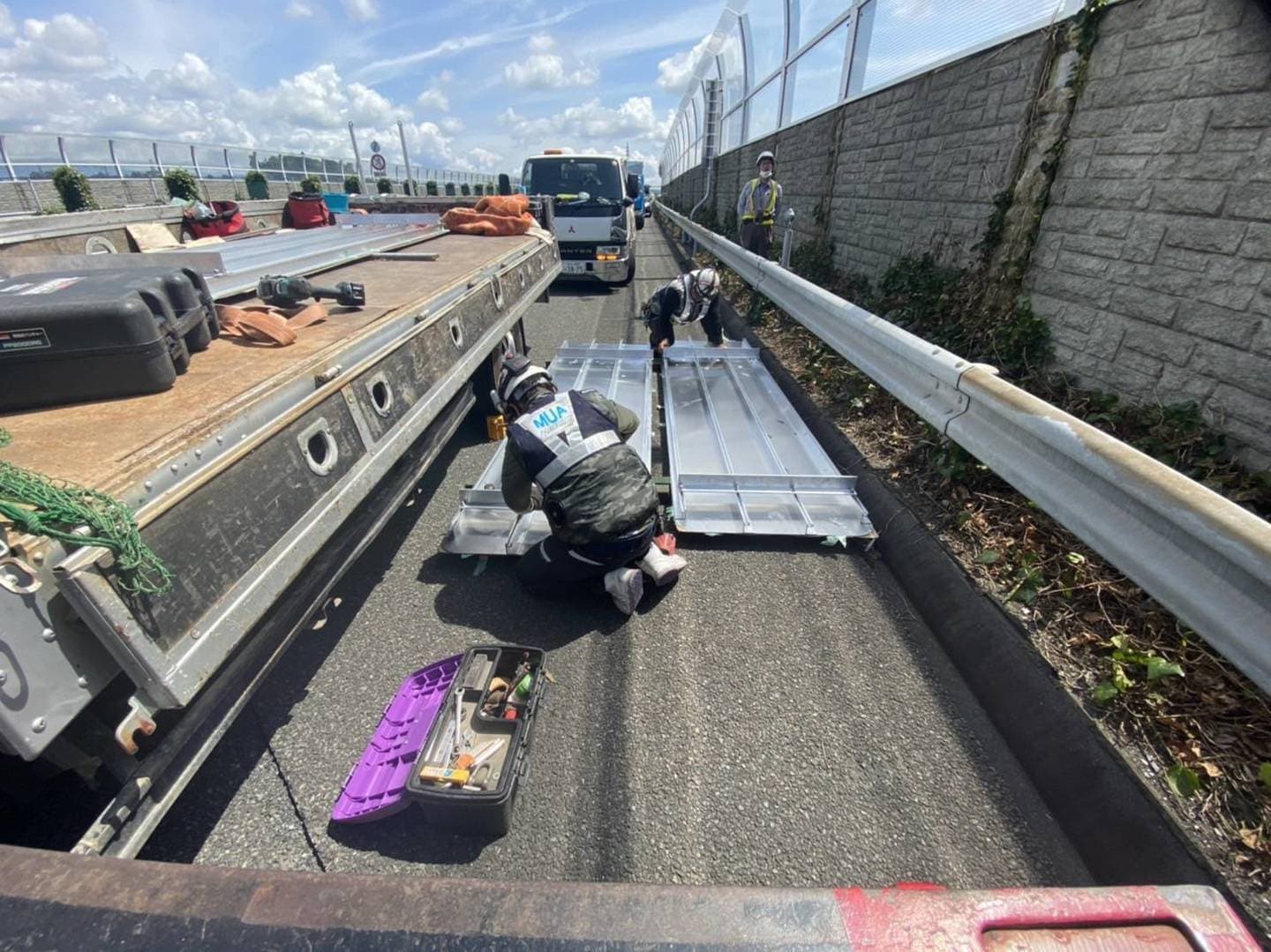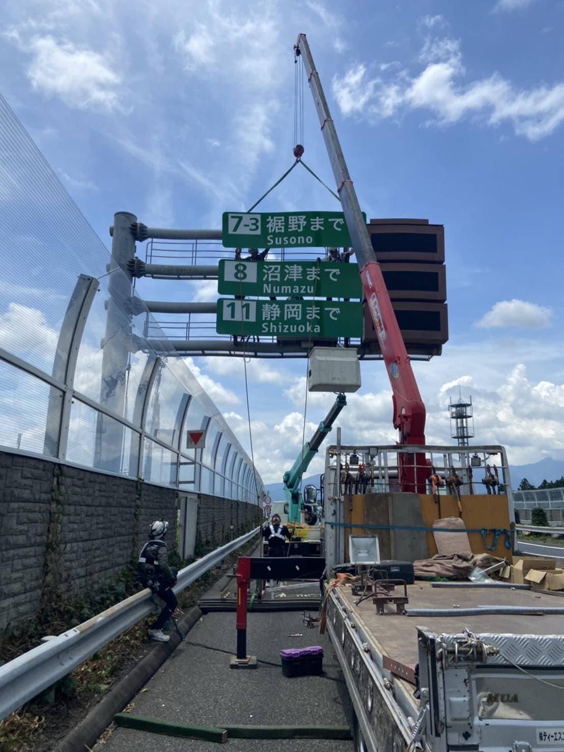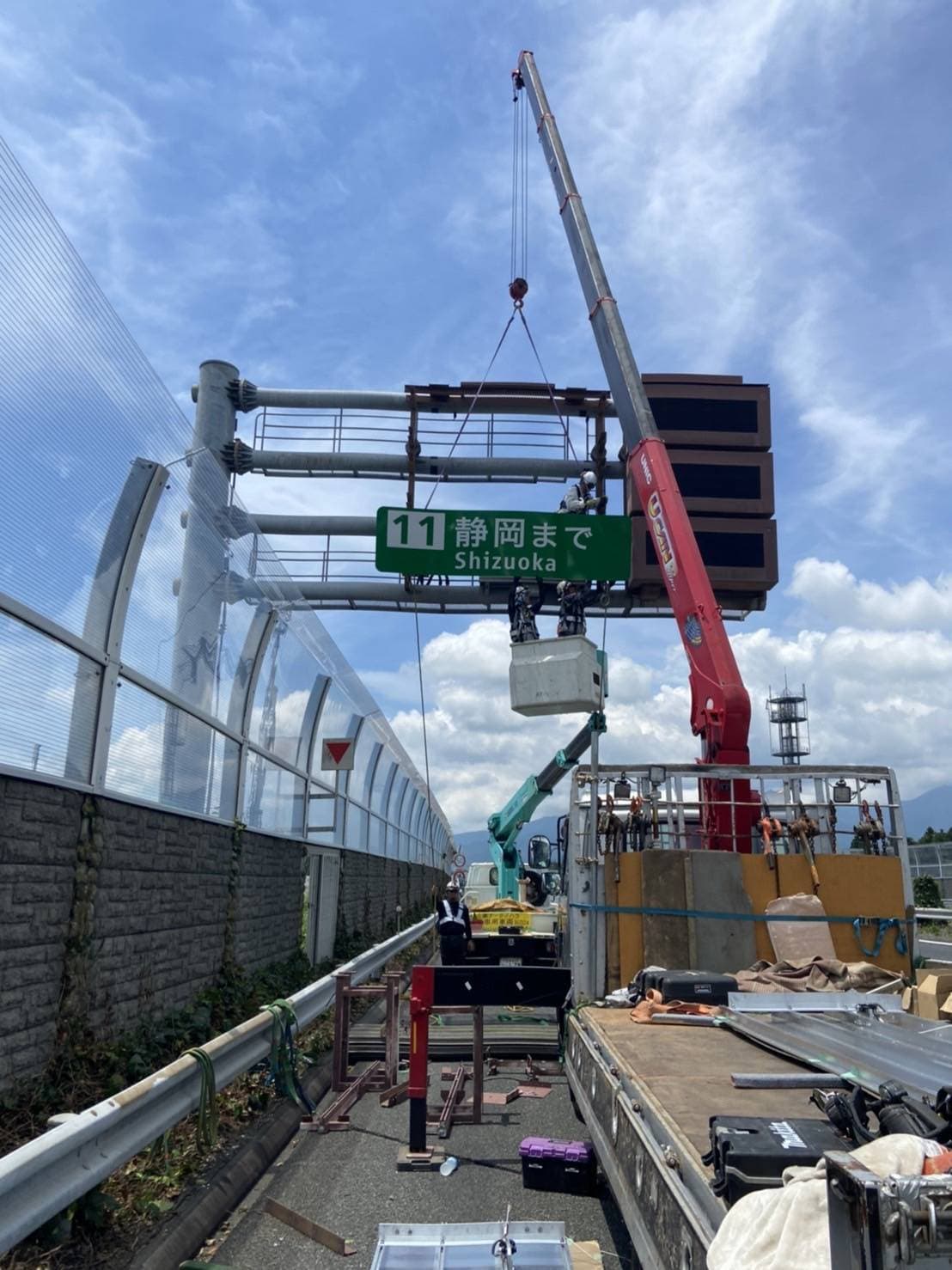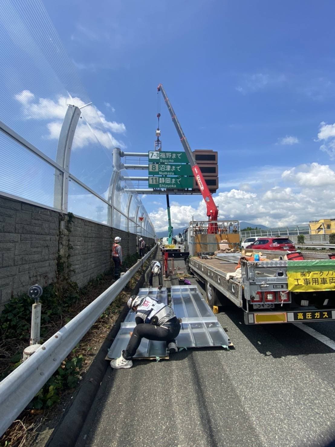 | 平成30年 | 12月 西新井陸橋遮音壁事故復旧工事 11月 仙台館内標識取替工事 10月 関越道花園門型標識移設工事 9月 東北道盛岡落下防止対策工事 東北道十和田落下防止対策 8月 トヨタ東富士防護柵ネット設置工事 7月 中央道那須地区遮音壁設置工事 小田原厚木有料道路仮説GR移設工事 4月 国道298号国分遮音壁設置工事 国道298号大和田地区遮音壁設置工事 1月 国道298号堀之内地区遮音壁設置工事 |